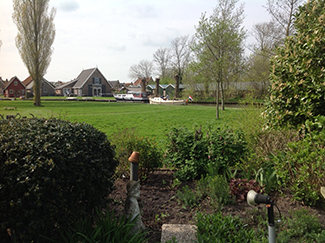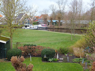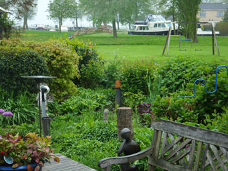 De tuin begint inmiddels te bloeien en de eerste pleziervaarboten varen al achter huis; dat is dan weer wel mooi om te zien.