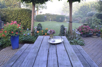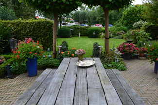 Deze foto biedt een overzicht van een deel van de voortuin.