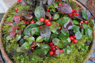 Ook de Bergthee (Latijn: Gaultheria 'procumbens') zat vastgekoekt aan de tuintafel.