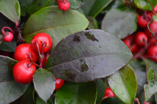 Deze plant, die zijn oorsprong kent aan de voet van de Nepalese Himalya, heb ik nu precies drie jaar. Hij blijft het hele jaar groen en is blijvend getooid met rode besjes.